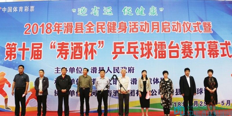 4月29日上午,由滑縣人民政府主辦、河南壽酒集團有限公司承辦的、2018年滑縣全民健身活動月啟動儀式暨第十屆“壽酒杯”乒乓球擂臺賽開幕式在河南省滑縣綜合健身館隆重開幕,中國乒乓球協會原副主席張燮林、河南省酒業協會領導前來祝賀,來自江蘇、遼寧、廣西、河南等九個省市區高校、乒乓球俱樂部的506名乒乓球愛好者見證了開幕式盛況。