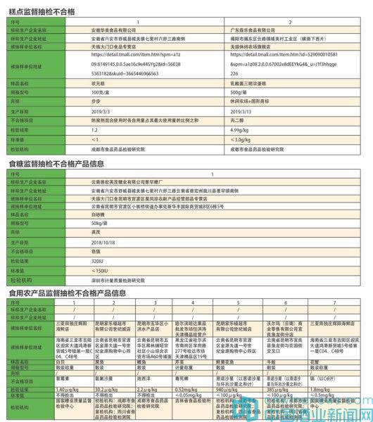 近期,國家市場監督管理總局組織食品安全監督抽檢,發現食用農產品、糕點、食糖3類食品10批次樣品不合格,檢出農獸藥殘留、重金屬污染、食品添加劑超限量使用等問題。