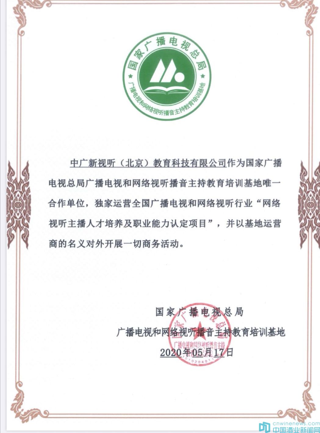 國家廣電總局在“廣電發(fā)【2020】35號”紅頭文件中指出:為加強廣播電視和網(wǎng)絡(luò)視聽人才隊伍建設(shè),成立國家廣電總局廣播電視和網(wǎng)絡(luò)視聽主持教育培訓(xùn)基地(簡稱國家廣電總局教培基地),負責(zé)包括醬香型白酒品鑒推廣主播等職業(yè)技能專項培訓(xùn)工作。