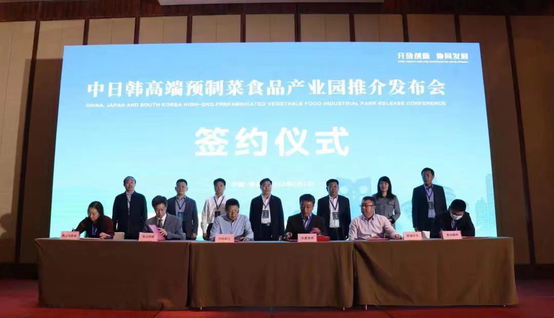 會議聚焦中日韓高端預制菜食品產業園、食品農產品跨境服務統采平臺、中國預制菜產業交易服務中心等內容進行推介發布。在現場領導、嘉賓以及媒體的共同見證下,中日韓高端食品預制菜產業園與黑貓天華(深圳)智慧冷鏈科技有限公司、華際科工(北京)衛星通信科技有限公司、浙江網盛生意寶股份有限公司、青島耀棟食品有限公司、青島日昇昌食品配料有限公司5家企業進行戰略合作簽約。
