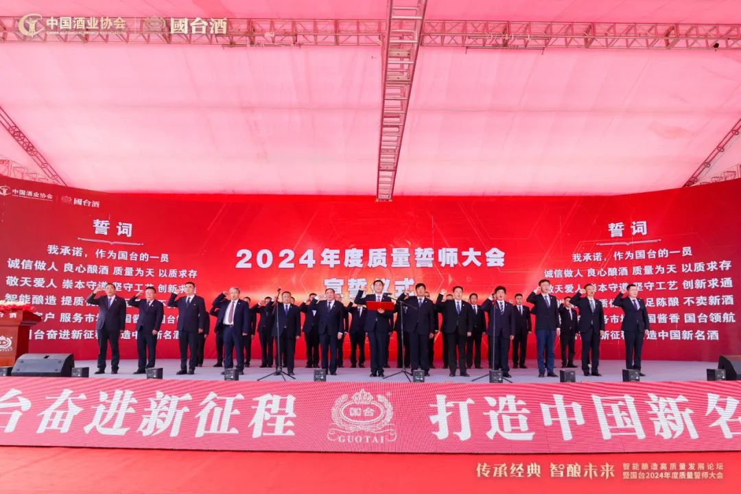 當天活動上,還舉行了國臺2024年度質量誓師大會,國臺管理班子代表在國臺酒業集團總經理張春新帶領下進行了質量宣誓。這是國臺連續第6年舉行質量誓師大會。