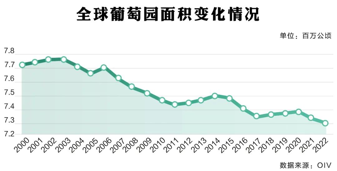 2022年全球葡萄園面積預(yù)計(jì)為730萬(wàn)公頃,略低于2021年(-0.4%),全球葡萄園面積是指各種用途的葡萄種植總面積。自2017年以來(lái),全球葡萄園的面積似乎已經(jīng)穩(wěn)定下來(lái)。