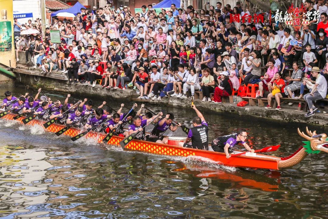 大國醬香、國臺(tái)領(lǐng)航;疊滘龍舟、醉了端陽!6月22日至23日,2023國臺(tái)酒·疊滘龍船漂移系列賽在廣東省佛山市南海區(qū)激情開賽,超過兩萬名觀眾來到現(xiàn)場(chǎng)觀看比賽,在蜿蜒的河道看臺(tái)之上,為每一艘龍船吶喊助威。