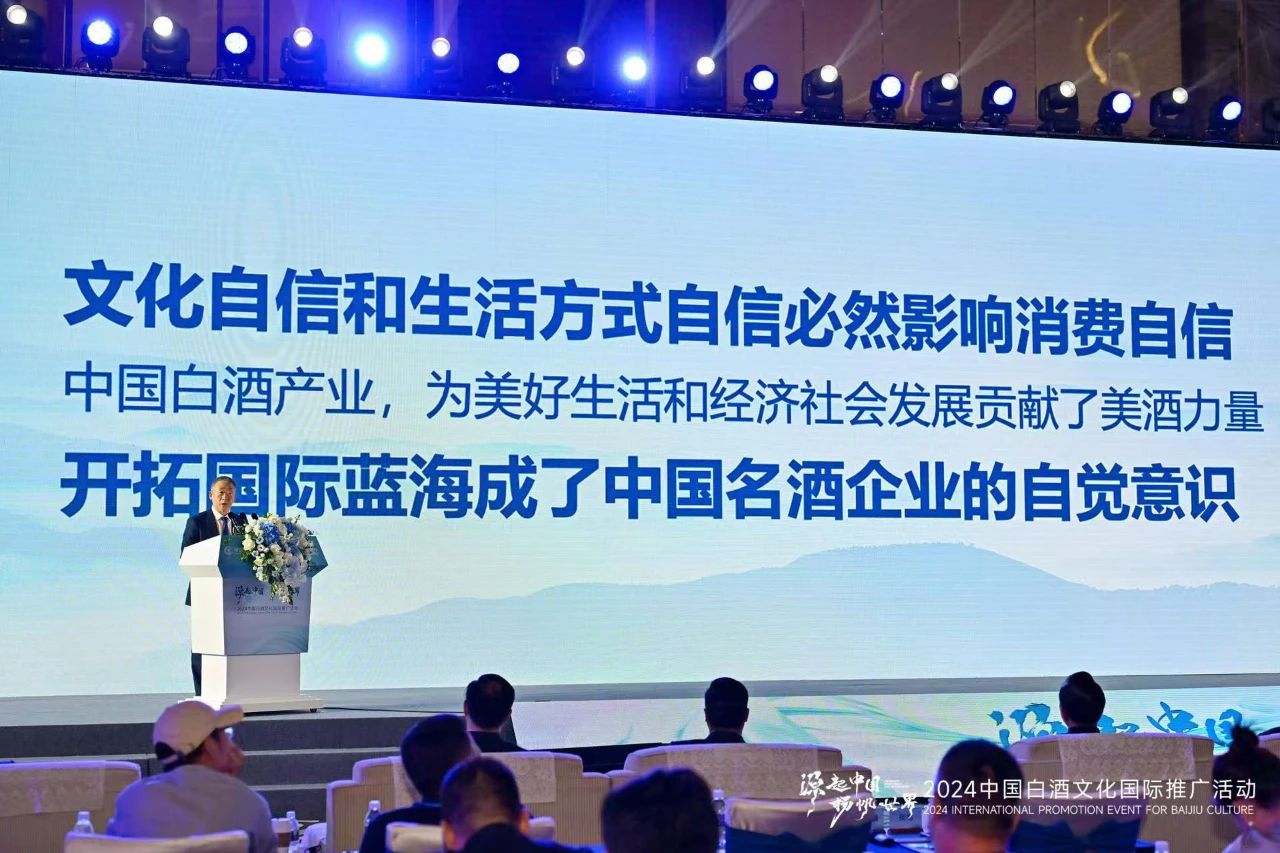今天,是中國傳統節日——九月九,重陽節,重陽節有登高望遠的習俗。中國白酒今天之登高,無疑就是望遠國際藍海。中國白酒走出國門,實現國際化是中國白酒產業共同的理想。中國白酒國際化更重要的含義在于中國文化國際化,中國人的生活方式國際化,中國酒文化的核心-分享和表達國際化,美酒為美好生活增添快樂國際化。中華民族最優秀的品質之一,就是再美的美酒,不會自己獨享,一定要與親朋好友一起分享。以此贊美生活,慶祝人生的歡樂時刻。美酒是用來分享幸福,分享快樂,分享感悟的。中國名酒作為中國白酒產業的引航者,一直以來,中國白酒國際化是中國名酒企業的重要使命。隨著中國的改革開放,增強了中國與國際的經貿往來,人文交流,生活方式的交融。國際名酒很早進入了中國,受到了中國消費者的喜歡。國際烈酒的生活禮贊,生活藝術內涵也被中國消費者接受,中國已經成為國際社會最大的美酒市場。中國經濟社會的高速發展,與國際交流合作的進一步提升,文化與生活方式交融越發頻繁,海外華人數量和影響越來越大。客觀上,文化自信和生活方式自信必然影響消費自信。與此同時,中國白酒產業在名酒產區和名酒企業帶領下,產能,品質大幅度提升,為美好生活和經濟社會發展貢獻了美酒力量,開拓國際藍海成了中國名酒企業的自覺意識。中國酒業協會作為產業服務機構,也必須承擔起中國白酒國際化的重任。在2017年我們成立了中國酒業協會白酒文化國際推廣委員會,中國名酒的骨干企業都是我們的成員單位。經過多年的努力,我們已經在法律法規,貿易規則,產品屬性,標準與標識,品飲方式,文化傳播等多方面進行了卓有成效的努力。譬如,關于中國白酒的國際表達,新國標10274飲料酒分類已經明確用漢語拼音:Baijiu。應我們協會的申請,海關總署在四年前已經正式批準中國白酒的國際表達。今天,總署的崔杰副局長也應邀出席論壇,在此,我要再次表示感謝!在WTO框架內,通過諸邊談判或雙邊談判確定相關烈酒貿易規則,以及與歐盟達成地理標識產品互認。我們還支持編撰了《中國白酒詞典》中英文版,已經由商務印書館出版。我們編撰了一本中國白酒文化宣傳冊,以及我們組織拍攝了一個中國白酒文化的宣傳片。同時組織中國名酒品牌走進波蘭,美國,德國參加國際酒展。在北京舉辦中國白酒之夜等活動。每年在上海酒博會期間,舉辦中國白酒雞尾酒世界杯大賽。以此創新中國白酒的飲用場景,消費方式。文化是美酒的靈魂,酒文化,承載著中華五千年悠久的歷史,承載著民族精神,美酒文化流淌在中國人的血液中。如何讓悠久深厚的中國酒文化傳播到世界各地,是中國白酒國際化的首要任務。這里蘊含著人文,科技,詩詞歌賦,乃至文明。我們要向世界講好中國白酒故事,這其中,中國白酒自然釀造的神奇,即不遷徙,不間斷釀造形成的釀酒微生態的多樣性與穩定性堪比世界釀造領域的魔法之釀。中國白酒活態文化的魅力。依然在用的幾百年釀造遺址,老作坊,老窖池,傳承幾百年的非遺釀造技藝,物質與非物質文化雙遺產舉世無雙。中國白酒甑桶蒸餾的神秘,世界蒸餾酒的起源,世界蒸餾酒最古老、最獨有的技藝。中國白酒陶壇陳貯的奧秘,陶壇陳貯只屬于中國白酒。中國白酒極其豐富的風味物質與活性物質的復雜構成,已經檢測出超過近四千種化合物,世界蒸餾酒中最為復雜。中國白酒的產區風土之特別,風味個性化之張揚在世界蒸餾酒中也是無與倫比。中國白酒的干杯文化,言簡意賅,寓意深刻,回味無窮。一杯泯恩仇,一杯成好友。中國飲酒文化的重要特點還在于美酒佳肴,我們更講究飲酒的場景、儀式,器皿及配餐。如何講好只屬于中國白酒的這些故事,我們應該去認真思考,并積極踐行。之前,我們確定了中國白酒八個走進。即讓中國白酒走進所有在中國的外國使領館;讓中國白酒走進所有中國在國外的使領館;讓中國白酒走進在中國工作和學習的外國友人;讓中國白酒走進國外的華人社區、華人超市;讓中國白酒走進在國外的中餐館;讓中國白酒走進所有在國外的中資機構、中資企業;‘讓中國白酒走進國外烈酒消費場所,酒吧和餐飲。中國白酒文化中,與生俱來具有跨越國界、種族的人性善意。當醇美的酒香浸染著相聚的喜悅、當悅耳的碰杯聲拉開歡慶的序幕、當愉悅的暖意撫慰落寞的喉舌……歡愉、興奮、灑脫等人類共通的情感便在美酒中交織激蕩,構成中國白酒文化跨越時空傳播的“直達通道”。透過體驗、經歷、感受。無論什么國界都能品嘗酸甜苦辣,體驗喜怒哀樂,與那些生于斯、長于斯、勞作于斯、悲喜于斯的人們實現情感的同頻共振。我們也可喜的看到,名酒企業通過贊助國際賽事,參與國際有影響的各類活動等等,正在讓中國白酒在世界名聲鵲起。目前,協會已經在Meta(麥塔)和 Instagram(印斯)開設了賬號,今天將正式上線。充分利用國際社交媒體平臺,結合語音講解、情景再現等多元化表達形式,將中國酒文化內容推送至有興趣的國際友人。還有,中國白酒英文手冊將在今天發布,中國白酒的國際稅目、中國白酒的國際標準、中國白酒釀造技藝申請世界非物質文化遺產,中國白酒釀造遺址申請世界文化遺產的工作,都在有序推進中。文化自信是一個國家、一個民族發展中最基本、最深沉、最持久的力量。推動中國白酒文化走向世