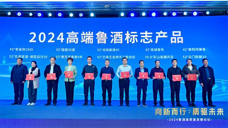 經過當天上午2024高端魯酒鑒評會的品評,“2024高端魯酒標志產品” “2024高端魯酒優質產品”相繼出爐,在下午的論壇進行了頒獎。