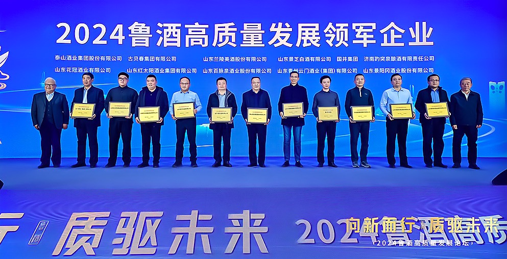 回首2024,魯酒的高質量發展離不開魯酒企業敢為人先、守正創新的匠心精神,他們勇于擔當,不忘初心,在魯酒振興、市場拓展以及品牌建設上樹立了卓越典范。泰山酒業集團股份有限公司、古貝春集團有限公司、山東蘭陵美酒股份有限公司、山東景芝白酒有限公司、國井集團、濟南趵突泉釀酒有限責任公司、山東花冠酒業有限公司 、山東紅太陽酒業集團有限公司、山東百脈泉酒業股份有限公司、山東青州云門酒業(集團)有限公司、山東景陽岡酒業股份有限公司獲評“2024魯酒高質量發展領軍企業”。