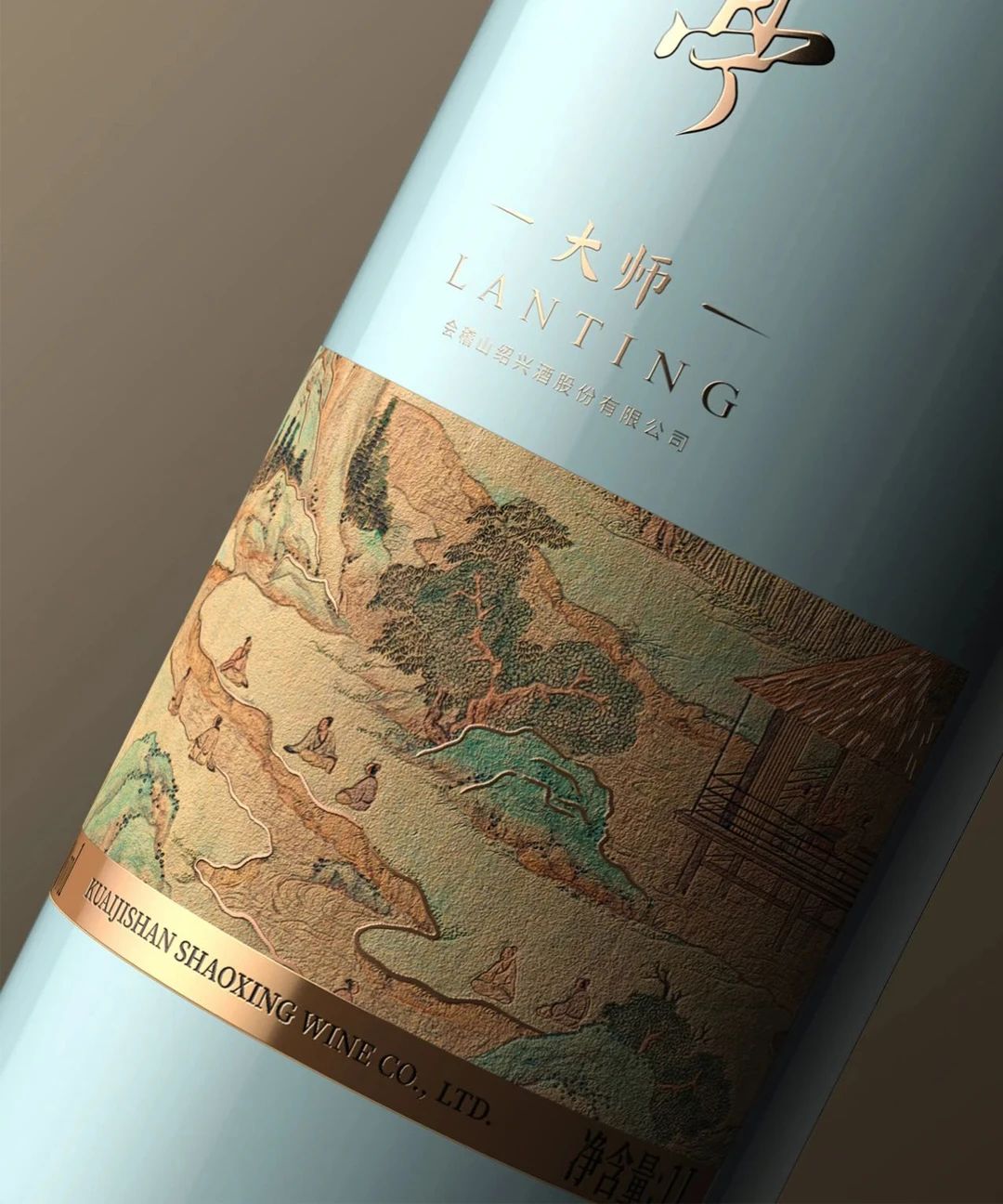 會稽山蘭亭·大師,作為中國高端黃酒的天花板,將傳承1600多年的中國超級符號——王羲之《蘭亭集序》,完美融入到蘭亭的產品設計中,瓶身以中國顏色“天青色”作為畫卷,上方僅保留王羲之書寫的“蘭亭”兩字,大量使用留白,下方使用畫家文徵明的《蘭亭修禊圖》,完美再現了千年前文人雅士匯聚到“蘭亭雅集”的盛大場景,讓人感受到中國書法文化魅力的同時,也能置身于天下第一酒局當中。蘭亭黃酒有諸多獨具中國特色的文化符號,形成了產品本身極高的辨識度。