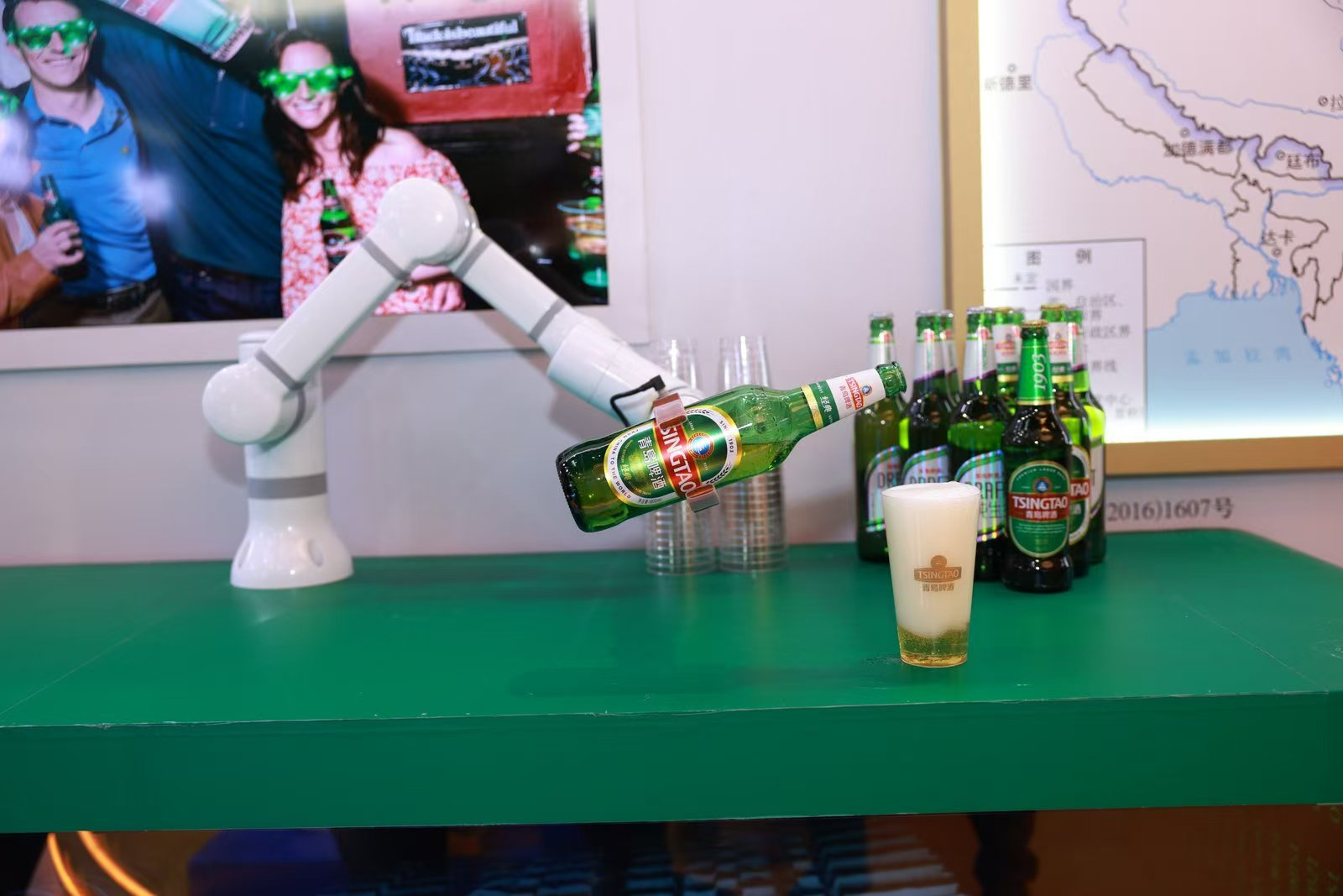 青島啤酒釀酒師、國家啤酒評酒委員江歡大家被團團圍住,他指著展區的兩張地圖,鋪陳了一條生動的鏈條——全球甄選、全球共享的完整供應鏈和產業鏈。