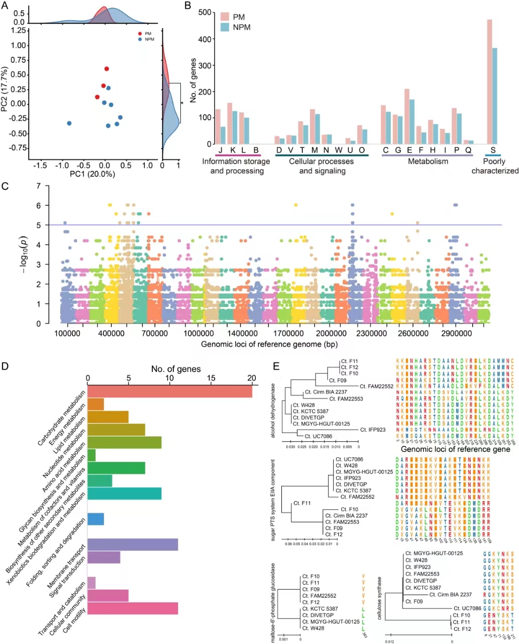 圖4 不同生境酪丁酸梭菌基因型差異及GWAS分析