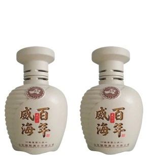 瓶蓋采用螺帽狀、開啟型,在增添了一份穩重與大氣的同時,更加防偽,保護消費者利益。在酒瓶的上方,鐫刻著一幅象形的威海地圖,寓意“百年威?!睕_出中國,走向世界?!鞍倌晖!钡奶掌?,猶如一件精雕細琢的藝術品,捧在手中,酒香襲人;開啟品評,陶醉其中。