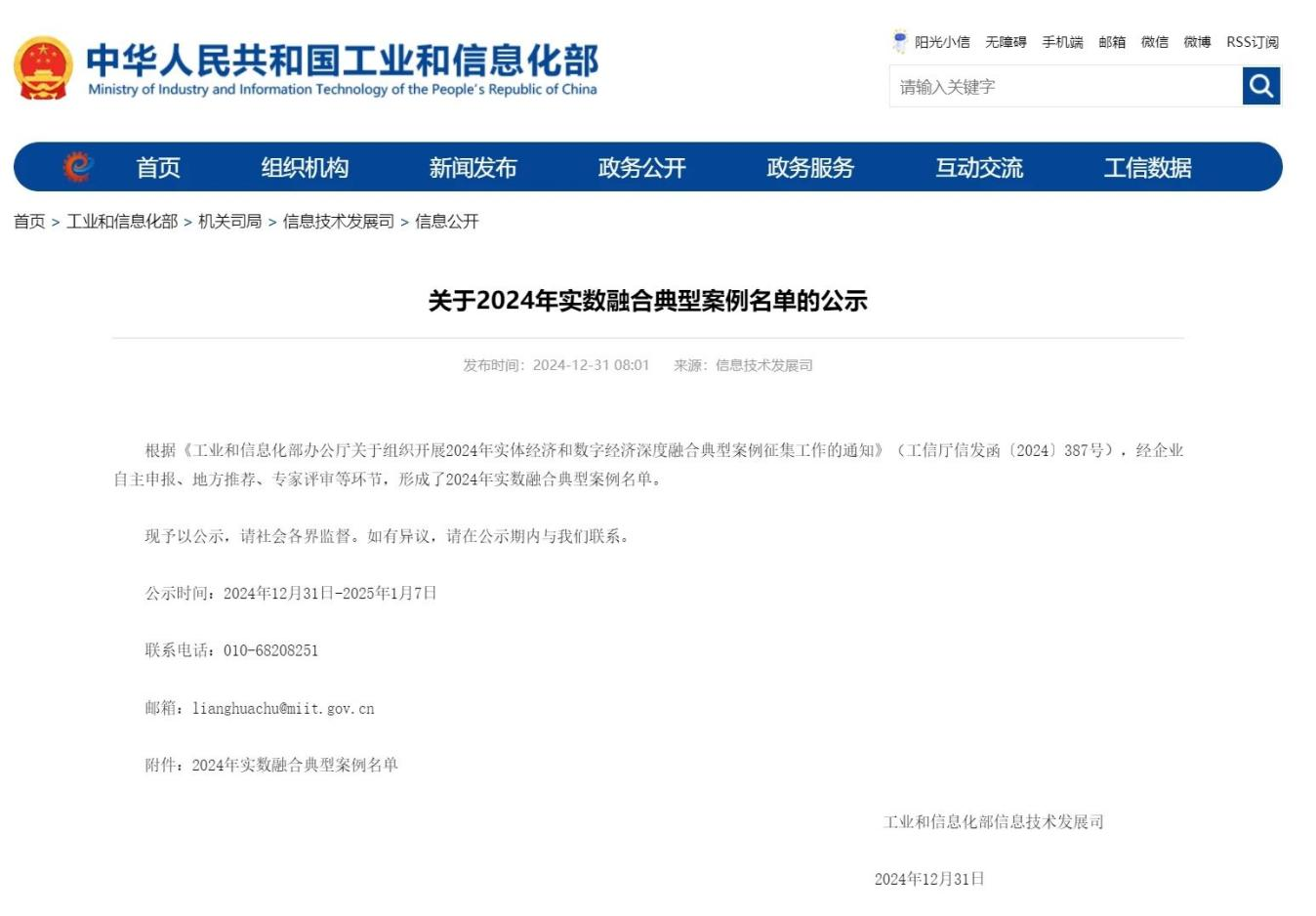 12月31日,工信部發布2024年實數融合典型案例公示名單,江蘇洋河酒廠股份有限公司的“全渠道供應鏈數智工廠領航實踐”入選其中的數字領航企業實踐案例,為宿遷首次入選工信部實數融合典型案例,宿遷市“數字領航”企業實現零的突破。