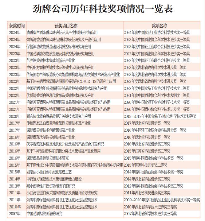 科技創(chuàng)新,研發(fā)投入是根本保證。勁牌公司每年科研投入占銷售額3%,2024年科研投入超3.7億。